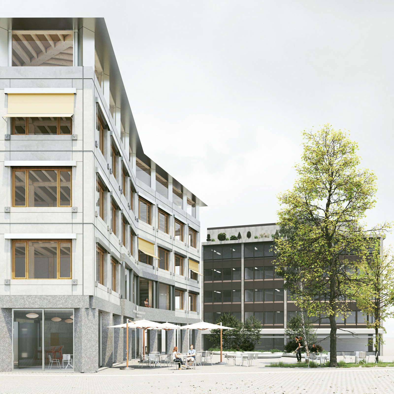 Programm Sanierung der Fassade und des Kerns des Gemeindeverwaltung Gebäude von Emmen sowie Aufstockung des Daches und der Photovoltaikanlage.