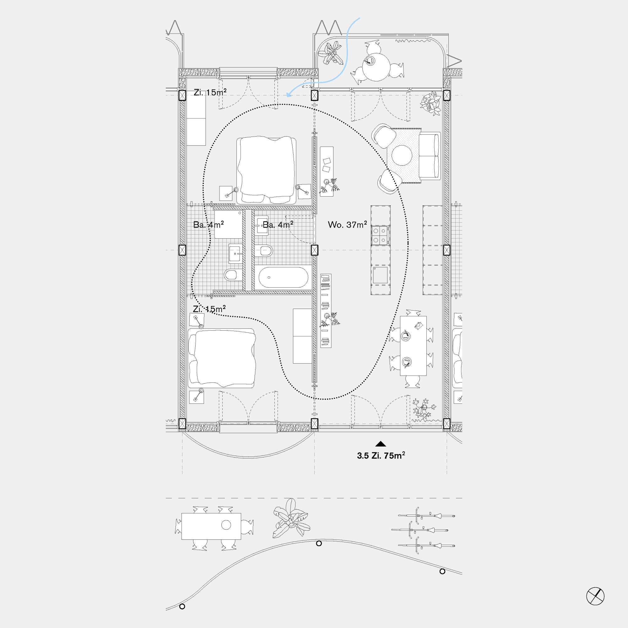 Programm Neubau mit Wohn- und Atelierräumen sowie Gewerbeeinheiten